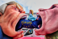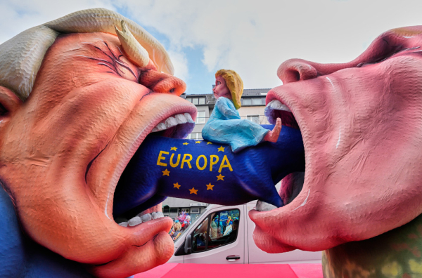 Na karnevalima u nemačkim gradovima koji su održani danas, među šaljivim prikazima pojavile su se i lutke američkog i ruskog predsednika, Donalda Trampa i Vladimira Putina, koji su u Dizeldorfu prikazani kako pokušavaju da progutaju Evropu sa suprotnih strana.