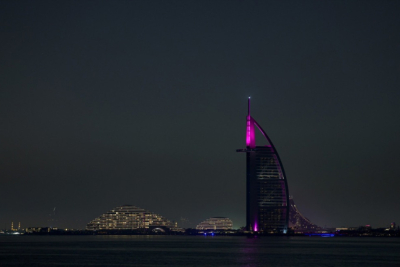 Hotel Burdž Al Arab, simbol Dubaija u obliku jedra, je u plamenu.