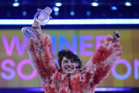 Kako se na samom snimku vidi, čini se da je Nemo imao nezgodu tokom slavlja sa evrovizijskim trofejem koji je vrlo brzo nakon što je dospeo u njegove ruke završio u dva dela.