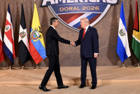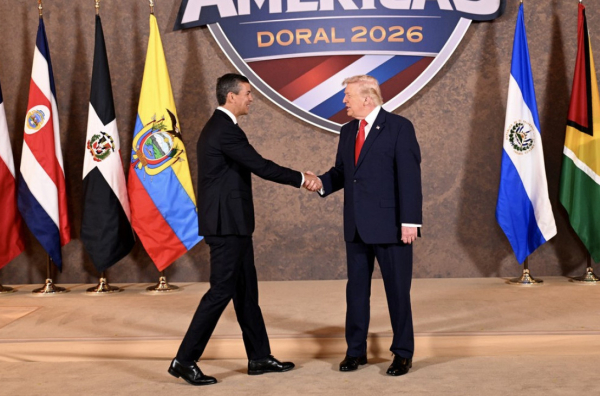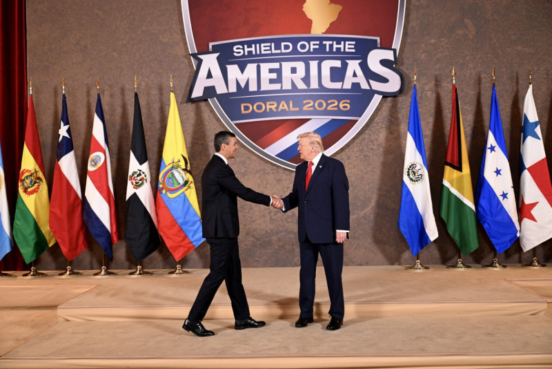 Trump i Penja sastali su se ovog vikenda na Trampovom samitu "Štit Amerik"“. U videu od oko 16 sekundi, koji se brzo proširio internetom, vidi se kako Trump tokom rukovanja povlači Penjinu ruku napred-nazad.