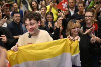 Inače, danas su na društvenim mrežama osvanuli i snimci dočeka Nema u Cirihu. Na aerodromu ga je dočekalo nekoliko stotina fanova, mašući zastavama i transparentima i skandirajući ime ovog 24-godišnjaka. Neki od njih su mahali transparentima na kojima je pisalo: "Binarnost postoji" i "Mi postojimo, insistiramo, istrajni smo".