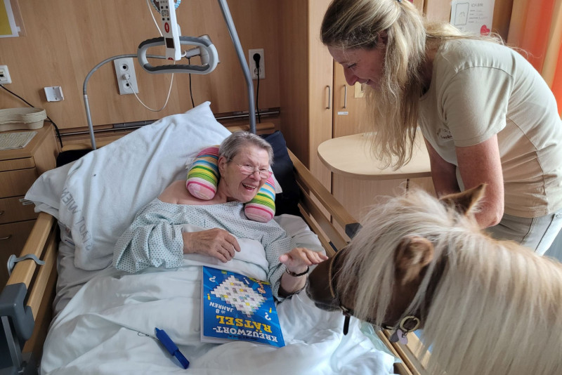 Svestan i empatičan kontakt sa životinjama u domovima za negu ima centralnu ulogu: posebno obučeni terapijski psi, patuljasti poniji i alpake redovno donose bliskost, aktivaciju i emotivne trenutke.