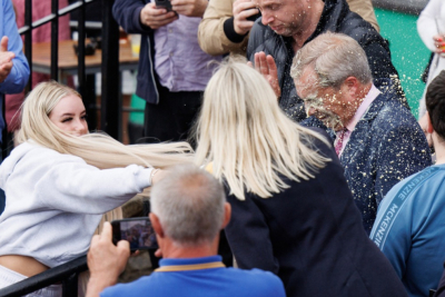 Viktorija Tomas-Bouen, OnlyFans zvezda, optužena je za napad i oštećenje imovine nakon što je političara Najdžela Faraža polila milkšejkom na predizbornom skupu u Eseksu.