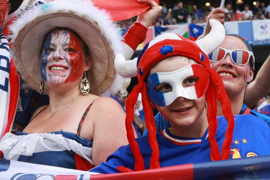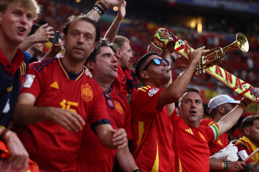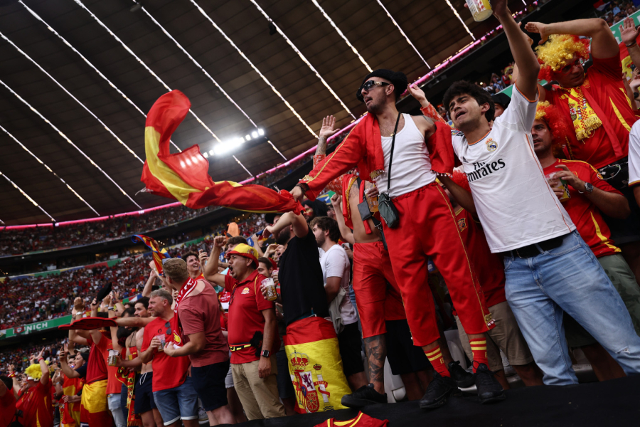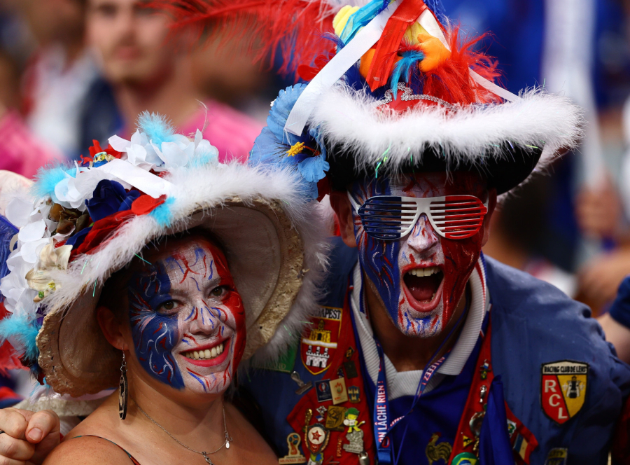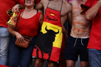 Dok su sa jedne strane Francuzi obojeni u boje francuske zastave, "okićeni" perjem i šeširima, a druge strane su Španci koji su rešili da "snagu bika" pokažu na takođe zanimljiv način.