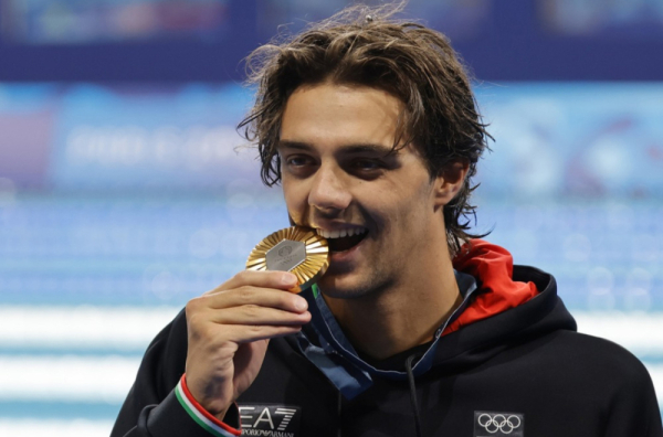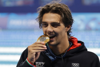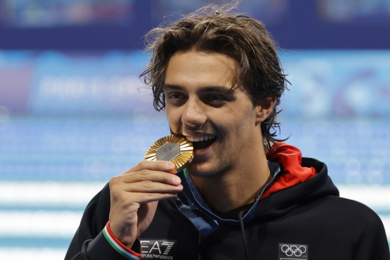 Italijanski plivač i olimpijac Tomas Čekon snimljen je kako spava pored klupe u parku.
