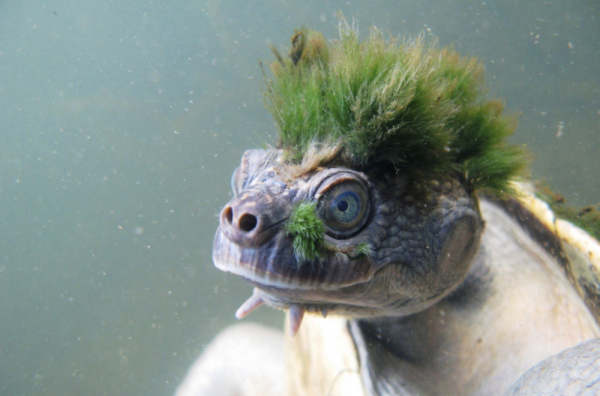 Kornjača reke Mari ima karakterističan izgled zahvaljujući "pankerskoj" frizuri, odnosno zelenim algama koje rastu iz njene glave i tela i pomažu joj da se fino maskira i sakrije od predatora. Ona ima i dve dugačke, mesnate izbočine zvane mrene koje vire iz brade: one joj pomažu da oseti sve što se dešava u njenoj okolini.