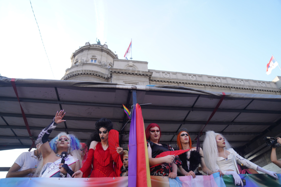 Kamion Prajda predvodio je šetnju kroz Nemanjinu. Ana Jovanović iz "Belgrade Pride" kaže da stoji kao ponosna trans žena romkinja i da govori u ime onih čiji se glas retko čuje.