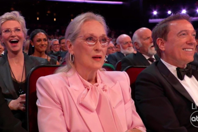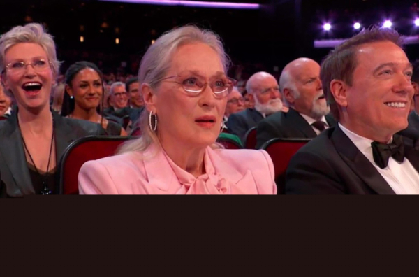 Glumac Rob Makelheni i njegova supruga, glumica Kejtlin Olson, predstavljali su nagradu za izvanrednu sporednu glumicu u humorističkoj seriji, a u toj kategoriji je bila nominovana i Strip za ulogu u seriji "Only Murders in the Building". Njih dvoje su odlučili da se našale s Meril Strip i uporedili sa štitnikom za genitalije.