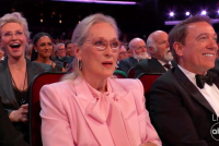 On se tada izvinio, a Meril Strip je izgledala šokirano njihovom šalom. Potom je pogledala dole i šapnula: "O, bože."
