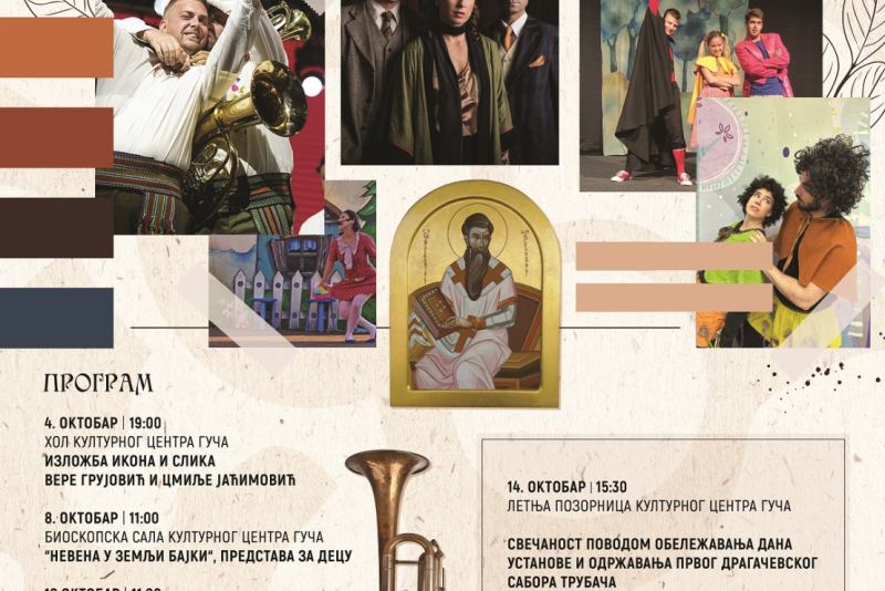 Pored izložbi, predstava, maskenbala, igraonica za decu, druženja sa građanima, gostima i njihovim upoznavanjem sa prebogatim istorijatom Dragačeva i Dragačevskog sabora trubača, u ponedeljak, 14. oktobra biće upriličena svečanost kada ćemo u našoj Guči okupiti najbolje trubačke orkestre, pobednike ovogodišnjeg Sabora, pevačke grupe koje čuvaju tradiciju izvornog pevanja, prijatelje iz folklora, saradnike, putnike dobronamernike...