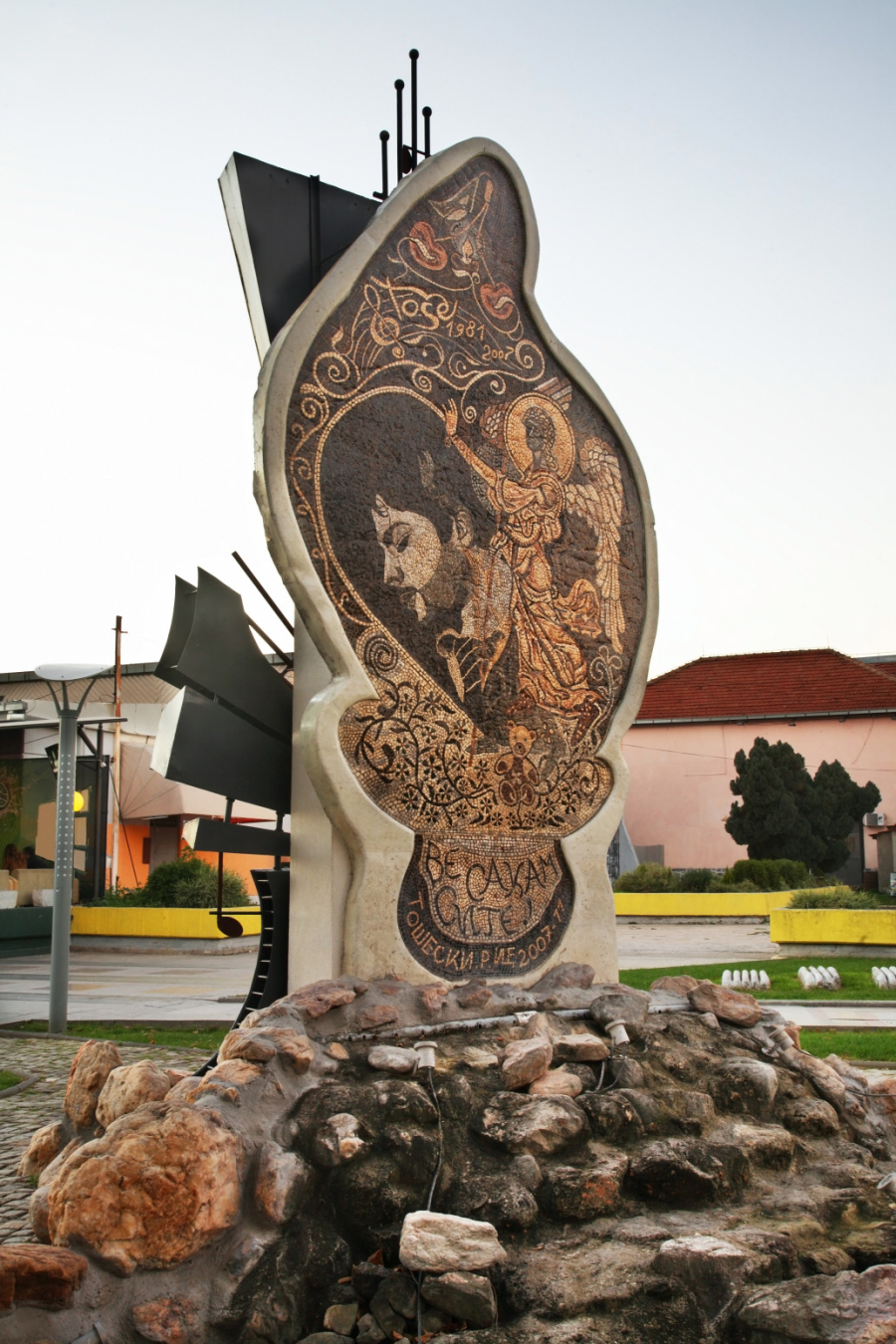 "Simbolika oblika i boja - oblik krsta i bela boja - hvata čistotu Tošetove duše i pojave. Najsvetlija crvena nijansa simbolizuje njegovu mladost", objašnjava Gažoska.