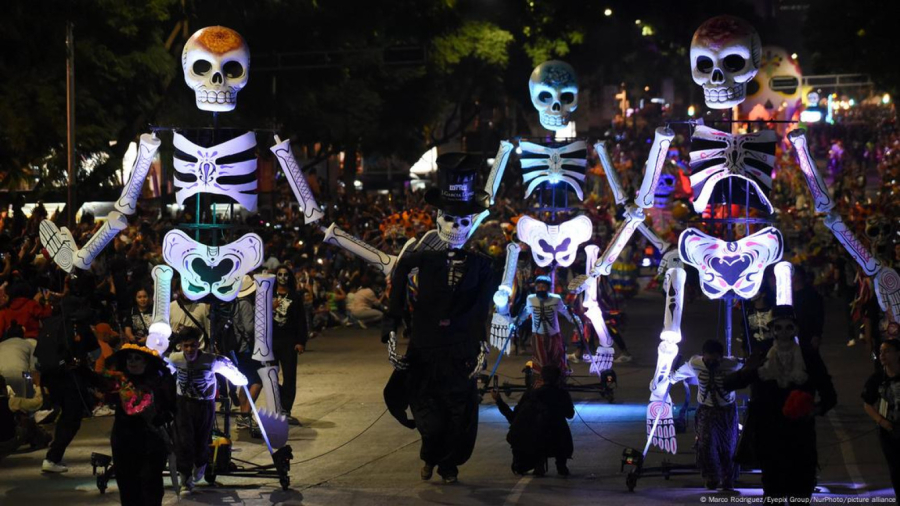 Tokom Día de Muertos Meksikanci slave smrt. Iako ovo u prvi mah može delovati morbidno, Dan mrtvih je vesela i šarena proslava. Kosturi se cerekaji i plešu ulicama, pekare prodaju hleb u obliku kostiju, a izlozi su dekorisani svetlucavim šećernim lobanjama.