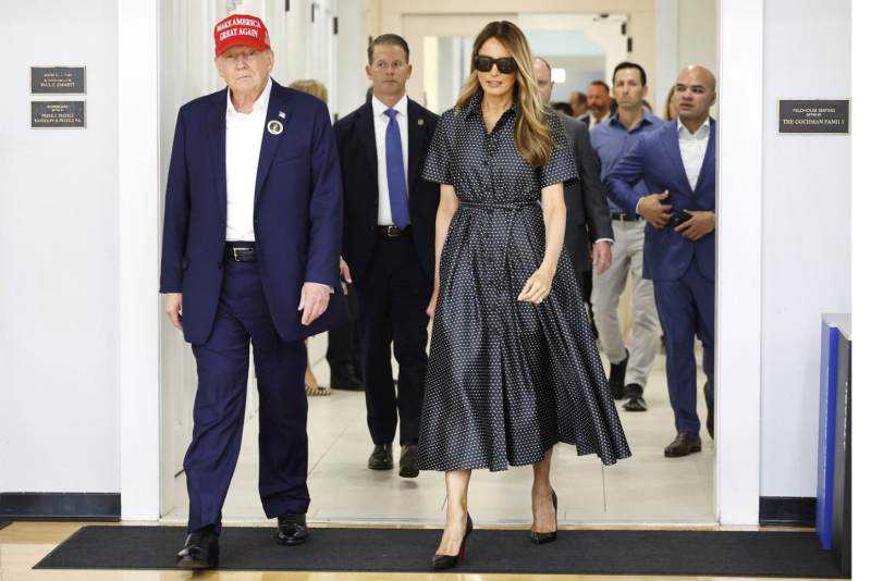 Melanija Tramp je na glasačko mesto došla u haljini na tačkice i nosila je naočare za sunce.