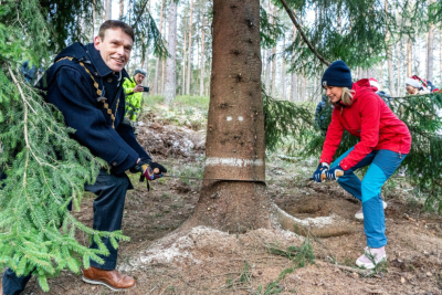 Norveška omorika, koja se svake godine šalje u London za Božić, posečena je tradicionalnom ceremonijom.