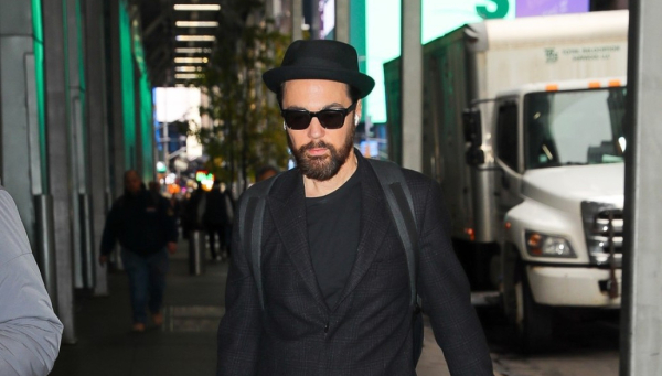 Glumac je na sebi nosio crnu majicu i kaput, farmerke, a nosio je i šešir i crne naočare. Na leđima je imao ranac, dok je u rukama držao ceger torbu.