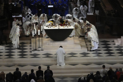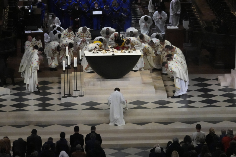 Pariski nadbiskup je obavio prvi obred i otvorio vrata zdanja, a nakon Makronovog kratkog svetovnog govora u katedrali, usledila je liturgija uz blagosiljanje.