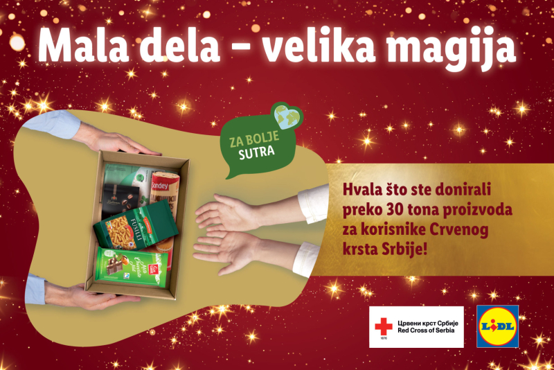 Kompanija Lidl Srbija je, uz pomoć svojih potrošača, u okviru tradicionalne praznične kampanje "Mala dela - velika magija" donirala sredstva u ukupnom iznosu od 6.300.000 RSD korisnicima Crvenog krsta Srbije.