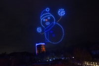 Video je snimljen trenutak kada su upaljeni dronovi počeli da padaju na zemlju i u jezero oko 18.30.