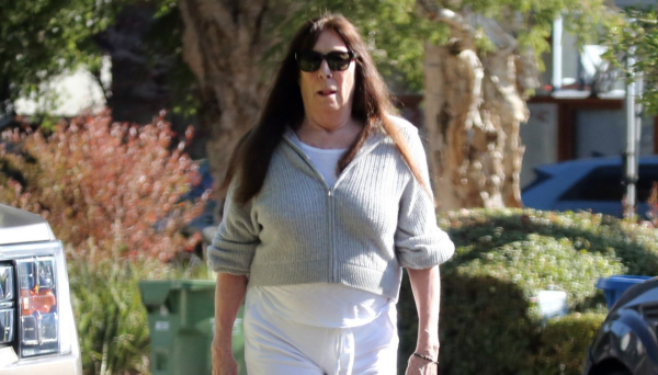 Oskarovka Andželika Hjuston snimljena je na ulici u Los Anđelesu ove nedelje. Nosila je bele pantalone i majicu, prekotoga sivu duksericu, a lice je sakrila iza tamnih naočara za sunce.