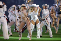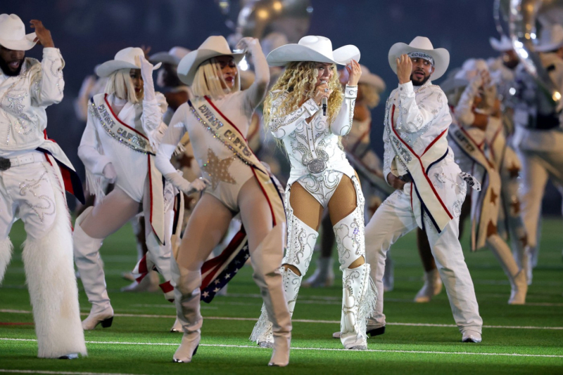 Nekoliko sati ranije, 32-struka dobitnica Gremija vodila je epski nastup na poluvremenu NFL-a na NRG stadionu u svom rodnom gradu u Hjustonu.