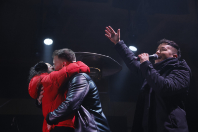 Tokom nastupa, jedan mladić iz Nemačke iznenadio je devojku prosidbom pred hiljadama ljudi koji su došli da dočekaju 2025. godinu u Beogradu.