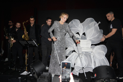 Nakon što su je dovezli do scene, Lepa Brena je uz pomoć štaka prešla na stolicu koja je specijalno dizajnirana za njen nastup.