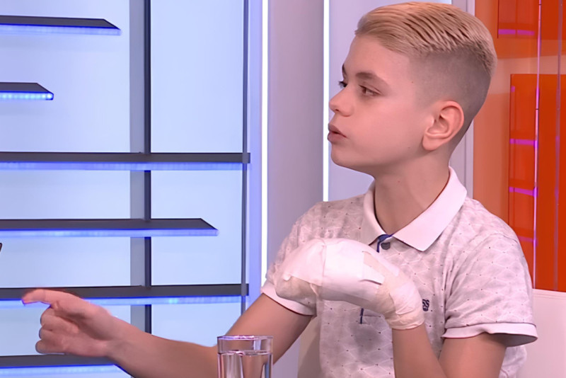 "Krv mi je bila i po licu, onda je neka žena iz zgrade, sa terase bacila kesu leda i rekla nam da tražimo prst i da ga stavimo u kesu sa ledom, a ja sam mislio: 'Koji, crni prst'?", ispričao je dečak.