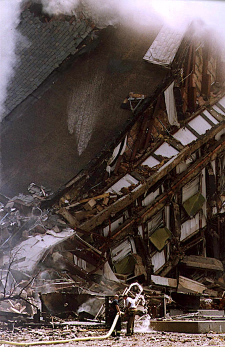 Obe kule Svetskog trgovinskog centra, koje su imale po 110 spratova, su se po udarima srušile u roku od sat i četrdeset minuta. Uništene su pritom ili oštećene i okolne građevine.