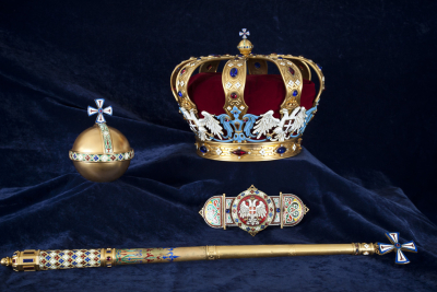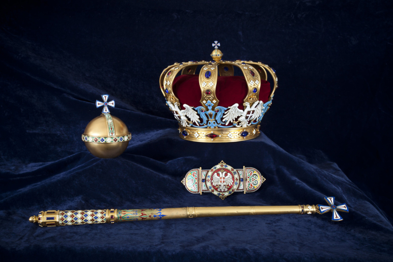 Kruna srpskog despota je ručno urađena od pozlaćenog srebra brojnim starim tehnikama i dekorisana smaragdima, granatima i slatkovodnim biserima.