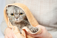 Ako morate da okupate mačku, obezbedite toplu prostoriju. Koristite plitku, mlaku vodu i podlogu na kojoj mačka neće kliziti u kadi ili lavabou. Govorite joj smirenim glasom, a nakon kupanja je odmah umotajte u topao peškir.