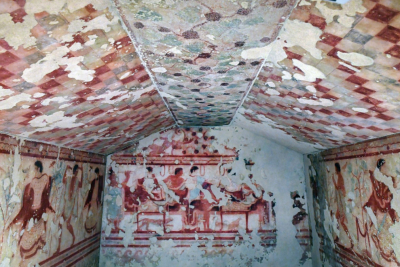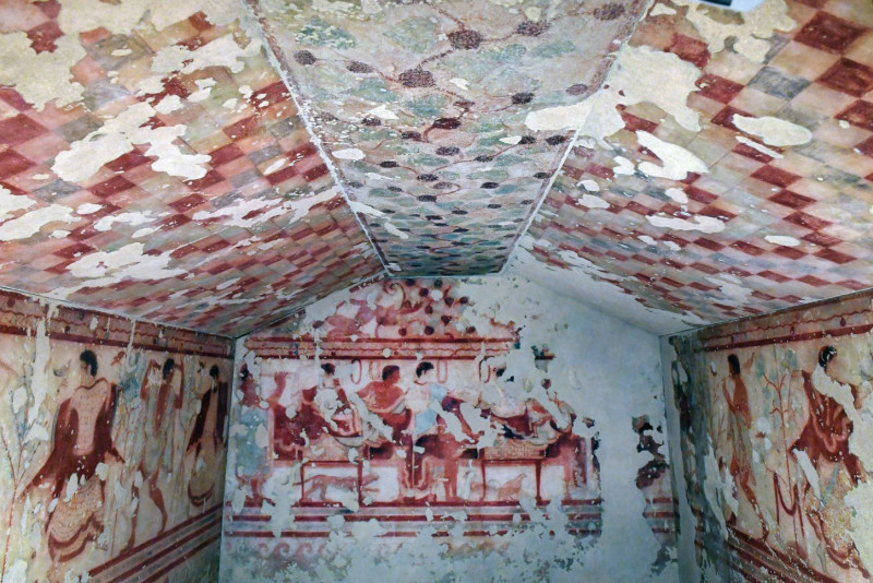 Na etrurskim nekropolama Monteroci, istočno od Tarkvinije u Laciju arheolozi su otkrili grobnicu oslikanu živopisnim zidnim freskama.