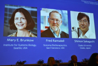 Naučnici Meri Brunkov, Fred Ramsdel i Šimon Sakaguči dobitnici su ovogodišnje Nobelove nagrade za medicinu za svoja otkrića u oblasti periferne imunološke tolerancije, saopštila je Nobelova skupština švedskog instituta "Karolinska".