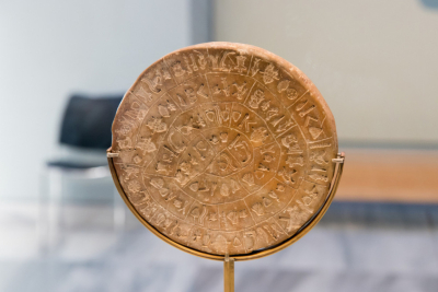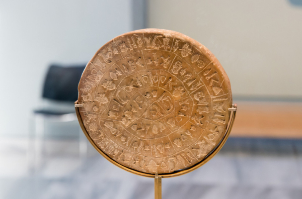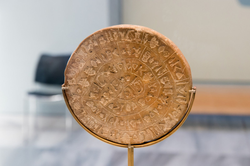 Sa Krita potiče i čuveni Festoski disk iz 2. milenijuma pre nove ere (na slici sasvim gore), jedinstven glineni predmet sa spiralno raspoređenim pečatnim simbolima. Spektakularan, ali upravo zato što je usamljen primerak, gotovo nemoguć za sistematsko dešifrovanje.