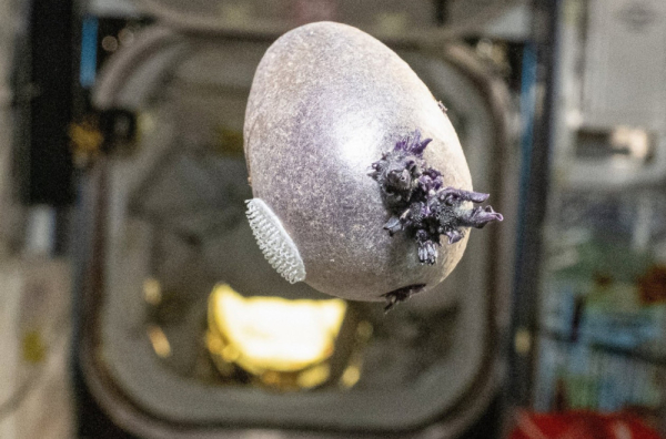 Ovaj svemirski krompir, nadimka Spudnik-1, predstavlja rezultat Petitovog rada na njegovoj hobi-bašti u svemiru tokom slobodnog vremena na ISS-u.