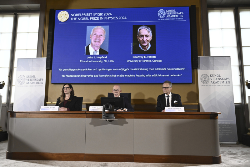 Švedska kraljevska akademija nauka odlučila je danas da dodeli ovogodišnju Nobelovu nagradu za fiziku Džonu J. Hopfildu i Džefriju E. Hintonu "za temeljna otkrića i pronalaske koji omogućavaju mašinsko učenje pomoću veštačkih neuronskih mreža".