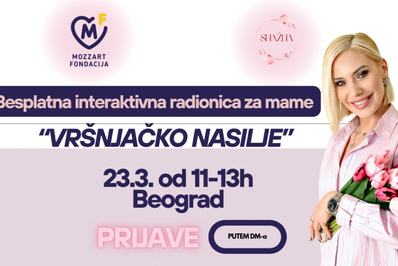 Titula trostruke mame najvažnija je životna uloga glumice i voditeljke Marije Veljković, a ova najlepša rola ju je inspirisala i da pokrene besplatne psihološke radionice za suzbijanje vršnjačkog nasilja. Marijin projekat „Snažna“ podržala je i Fondacija Mozzart, a prvo druženje zakazano je za 23. mart od 11 časova u prostoru ove fondacije u Ulici cara Dušana 35 na Dorćolu. Na LINKU se možete prijaviti za radionicu, ali požurite, jer je broj mesta ograničen!