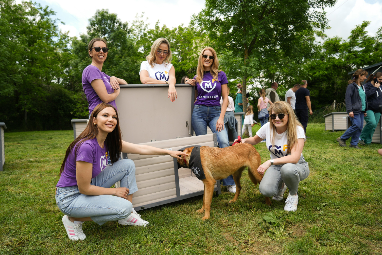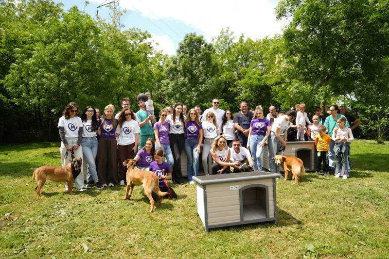 U ovom prihvatilištu trenutno boravi 900 pasa, a o njima se brine sa mnogo ljubavi i posvećenosti. Zaposleni iz kompanije i Fondacije Mozzart obišli su prihvatilište, slušali o tome kako se životinje ovde zbrinjavaju, a zatim timski prionuli na sklapanje kućica za pse, koji su odmah imali priliku i da isprobaju svoje nove domove.