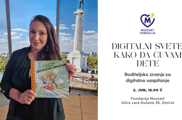 "Digitalne avanture", zbirka edukativnih priča za najmlađe, na zanimljiv, razumljiv i dopadljiv način obrađuje teme vezane za bezbednost dece na internetu. Kroz interaktivne i poučne sadržaje, ove priče pomažu deci da razumeju potencijalne opasnosti digitalnog sveta, ali i da nauče kako da prepoznaju i izbegnu rizične situacije, a svoj primerak možete obezbediti nakon besplatnog predavanja i druženja sa autorkom u Fondaciji Mozzart.