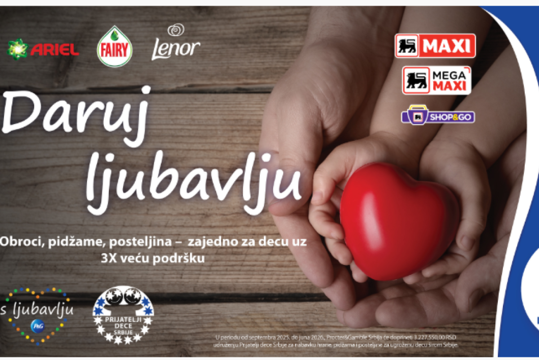 Brendovi Ariel, Lenor i Fairy, kompanije Procter & Gamble, u saradnji sa Delez Srbijom i udruženjem Prijatelji dece Srbije, nastavljaju svoju misiju "Daruj ljubavlju".