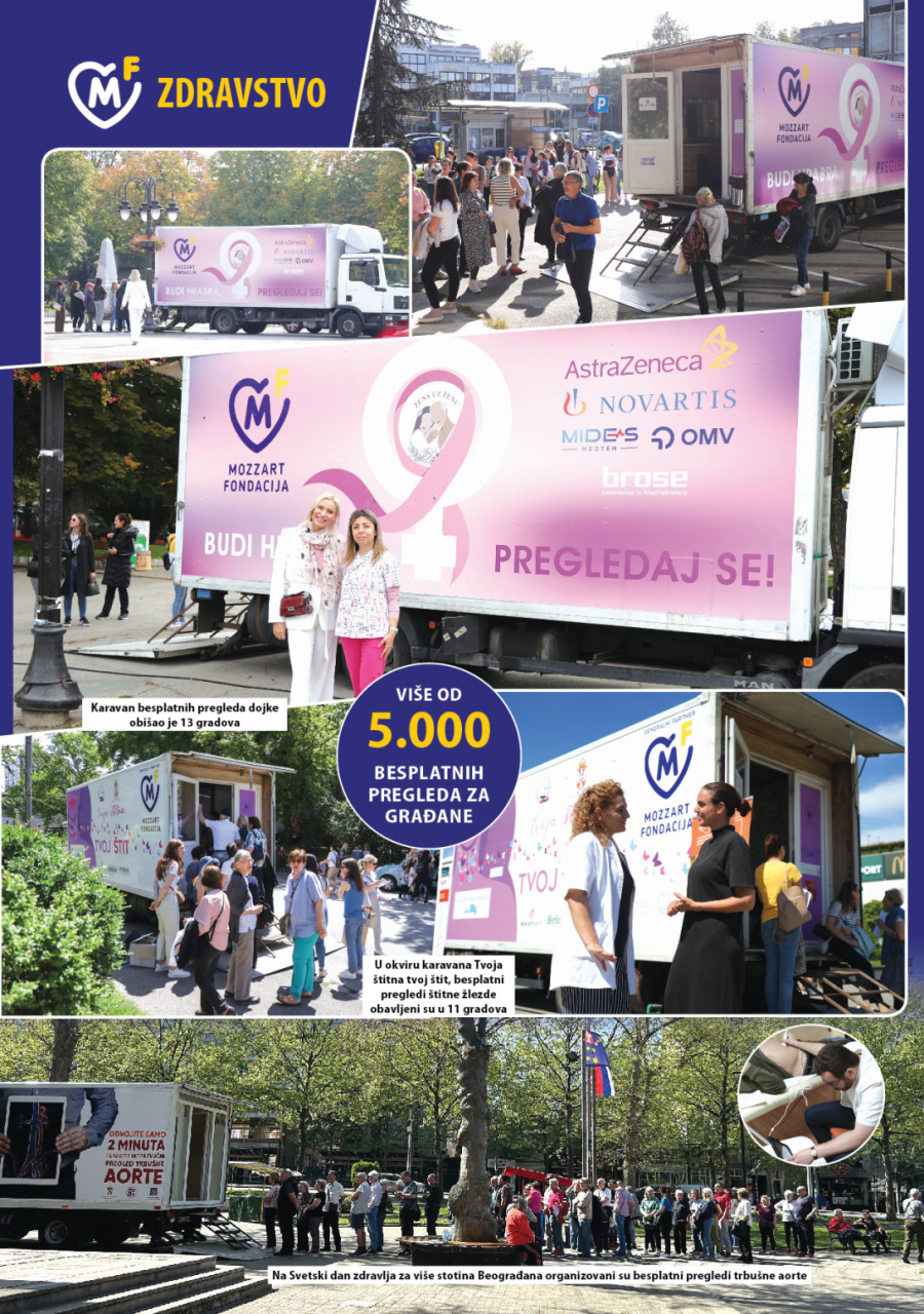 Organizovano je i više od 5.000 besplatnih pregleda za građane, a veliku akciju Fondacije Mozzart podržale su i poznate ličnosti. Početna stanica je bio Beograd, gde su realizovani pregledi trbušne aorte.