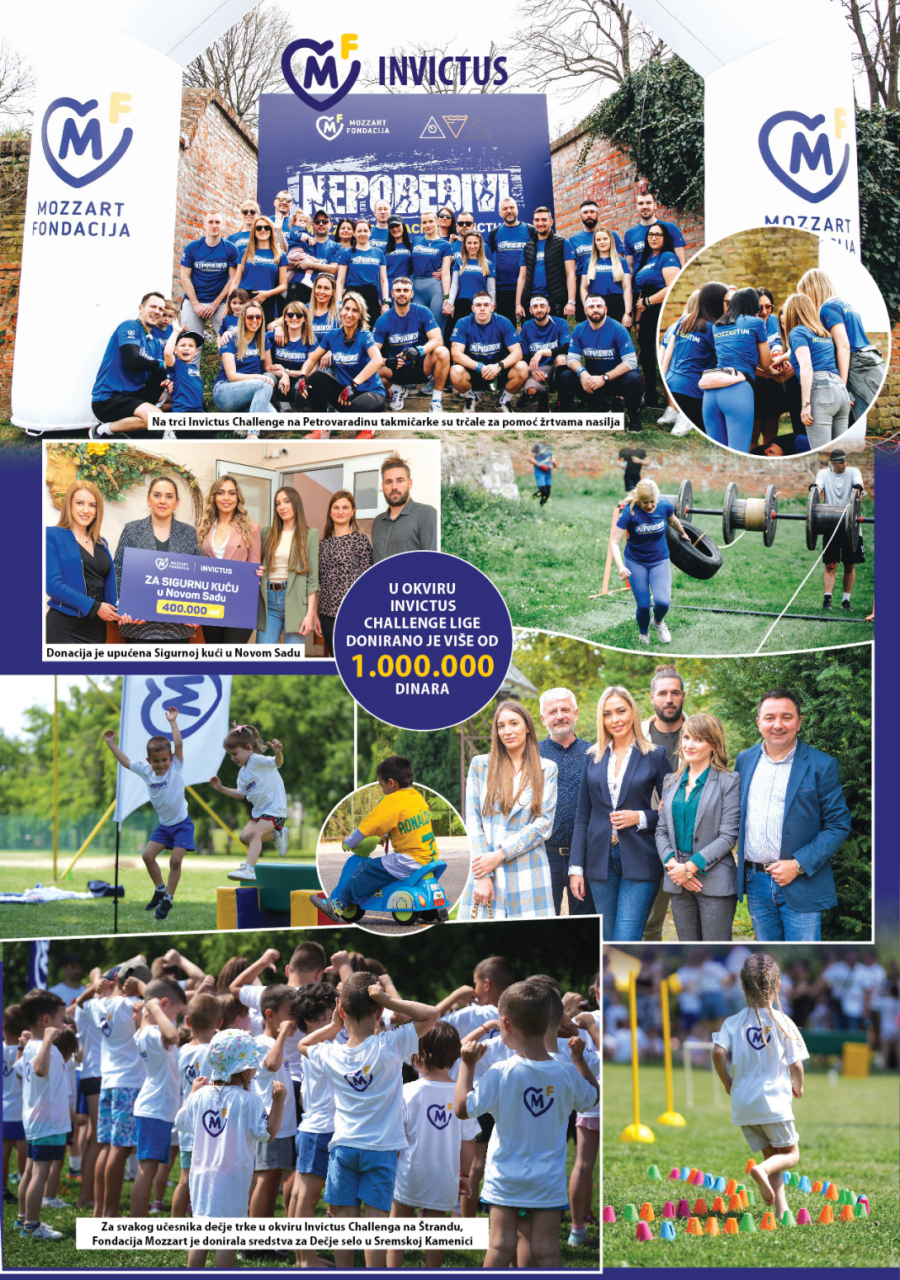 Svaka od tri redovne trke OCR Invictus Challenge lige protekla je u znaku timske humanosti Fondacije Mozzart i takmičara. U ukupnom skoru donirano je više od milion dinara različitim humanitarnim organizacijama – Sigurnoj kući u Novom Sadu, Dečjem selu u Sremskoj Kamenici i Fondaciji "Tate Novosađani".