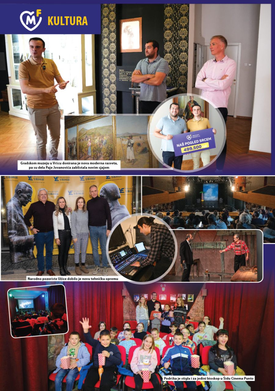 Gradskom muzeju u Vršcu donirala je sredstva za novu modernu rasvetu u prostoriji gde su izložena dela Paje Jovanovića, a pomoć je izdvojena i za malli bioskop u Šidu koji okuplja građane svih generacija i vraća kulturu u ovaj grad.